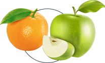 pomeranče, citronu a jablka